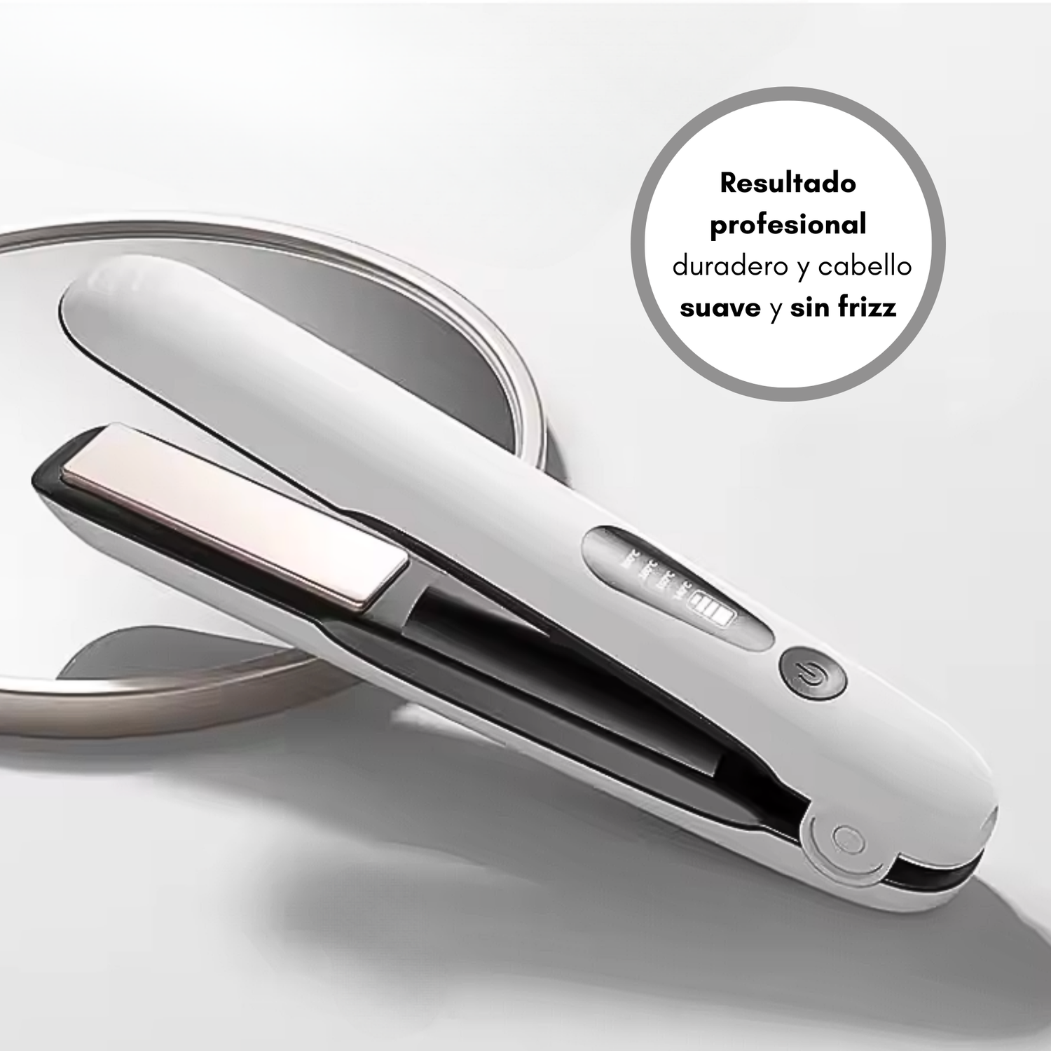 Después: Cabello liso, sedoso y con brillo profesional al instante. Su diseño inalámbrico te permite peinarte en cualquier lugar: en casa, en la oficina o antes de salir con amigos. ¡Siente la libertad de lucir siempre impecable, adaptándote a tu ritmo de vida moderno y dinámico!