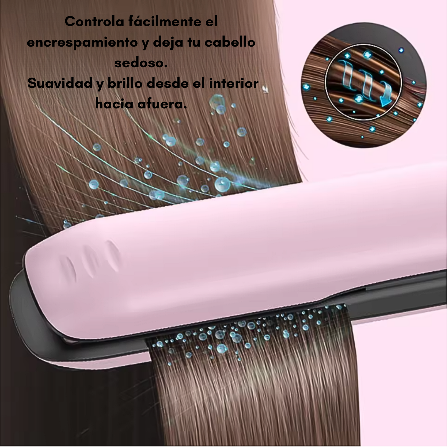 ¡Solo unos segundos! Podrás alisar tu cabello rápidamente y disfrutar de un acabado suave y brillante al instante.
